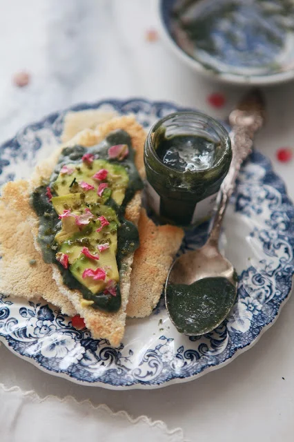 I delight in these crackers as a savoury toast replacement with avocado, a smearing of ghee, and smoked Maldon salt; serve it as amuse-bouche with a variety of toppings including grass-fed liver pâté; and enjoy them as dessert with royal jelly honey, cardamom, and ghee on top.
